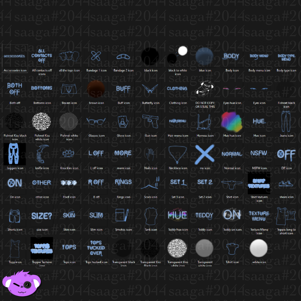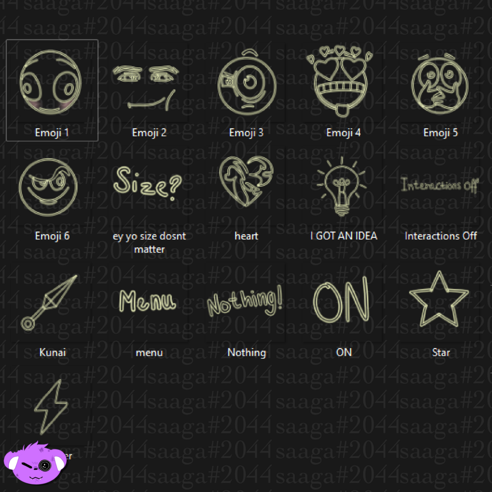 2. When in use please credit saaga#2044 or saaga.gumroad.com or https://payhip.com/saaga